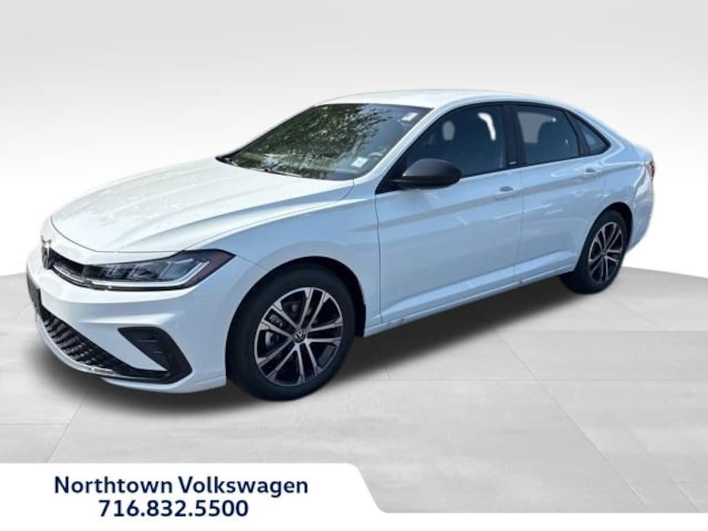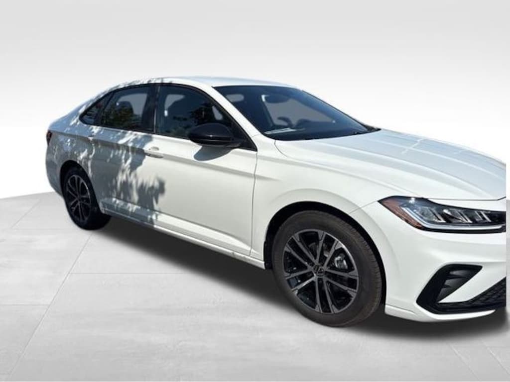 White 2025 Volkswagen Jetta 1.5T Sport FWD 8-Speed Automatic with Tiptronic 1.5L I-4 DI DOHC Turbocharged Cloth.
