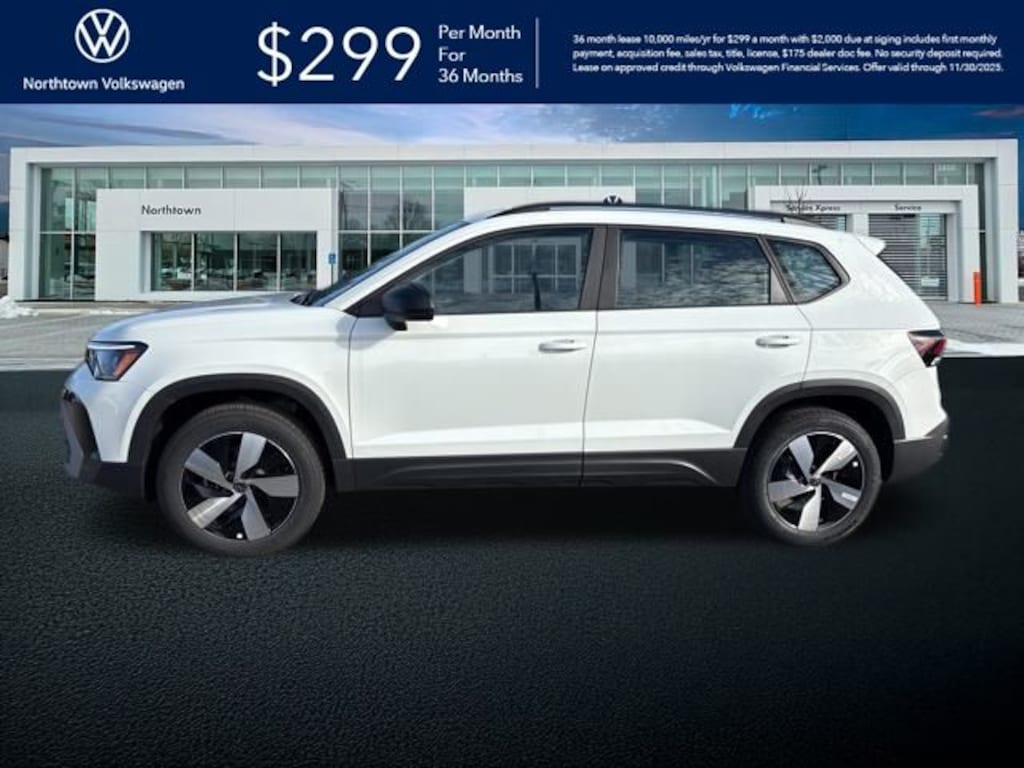 White 2025 Volkswagen Taos 1.5T S AWD 8-Speed Automatic with Tiptronic 1.5L I4 Turbocharged DOHC 16V LEV3-SULEV30 174hp