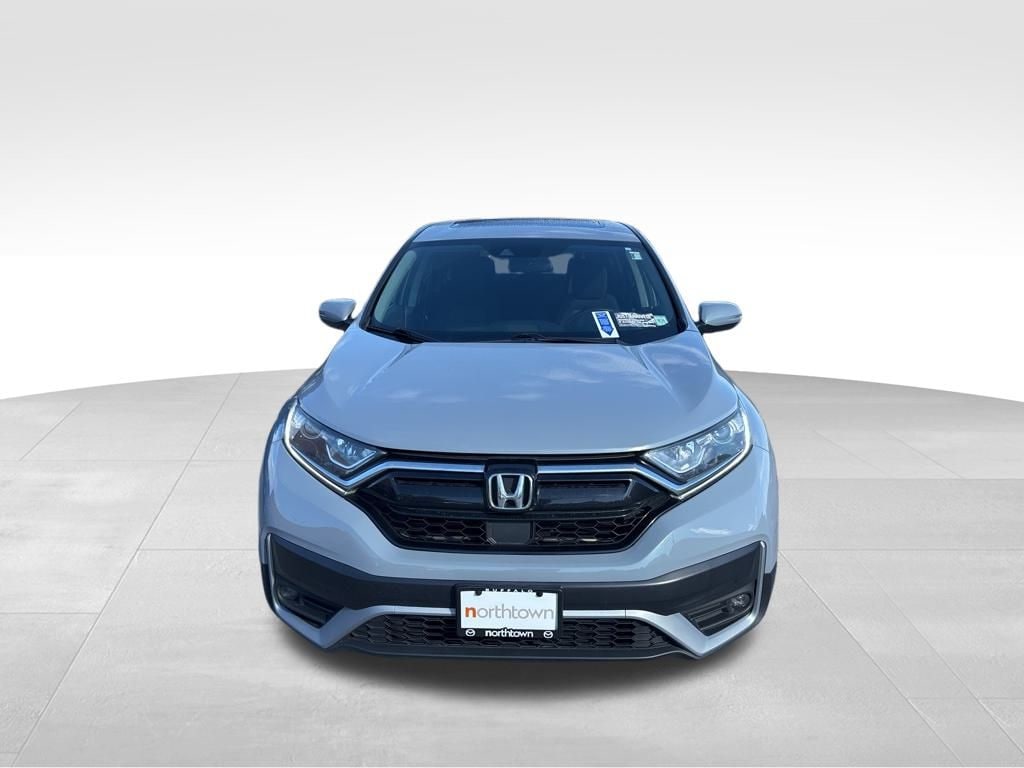 Modern Steel Metallic 2021 Honda CR-V EX AWD CVT 1.5L I4 DOHC 16V Adaptive Cruise Control: Adaptive Cruise Control (ACC) with Low-Speed Follow, AM/FM radio: SiriusXM, Apple CarPlay/Android Auto, Compass, Exterior Parking Camera Rear, Front dual zone A/C, Front fog lights, Heated door mirrors, Heated front seats, Power driver seat, Power moonroof, Speed-Sensitive Wipers.