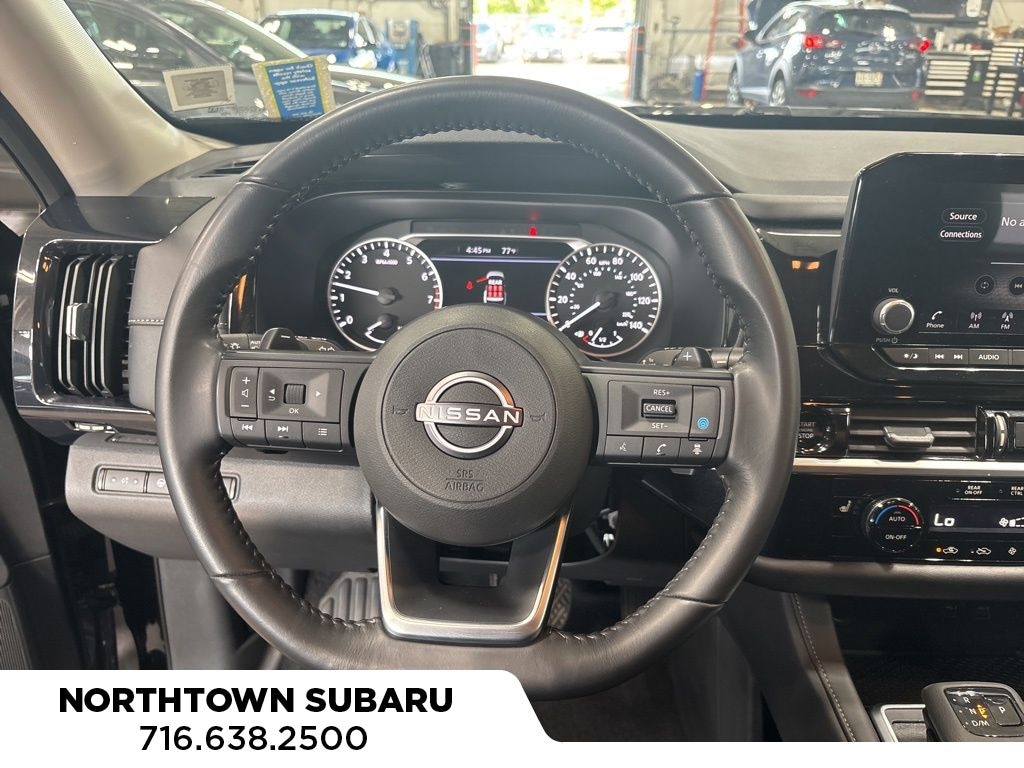 See the rest of our inventory at: NORTHTOWNSUBARU.COM 4WD, 3rd row seats: bench, 4-Wheel Disc Brakes, 6 Speakers, ABS brakes, Air Conditioning, Alloy wheels, AM/FM radio: SiriusXM, Auto High-beam Headlights, Automatic temperature control, Brake assist, Bumpers: body-color, Cloth Seating Surfaces, Delay-off headlights, Driver door bin, Driver vanity mirror, Dual front impact airbags, Dual front side impact airbags, Electronic Stability Control, Emergency communication system, Four wheel independent suspension, Front anti-roll bar, Front Bucket Seats, Front Center Armrest, Front dual zone A/C, Front reading lights, Fully automatic headlights, Heated door mirrors, Heated Front Bucket Seats, Heated front seats, Illuminated entry, Knee airbag, Leather steering wheel, Low tire pressure warning, NissanConnect featuring Apple CarPlay and Android Auto, Occupant sensing airbag, Outside temperature display, Overhead airbag, Overhead console, Panic alarm, Passenger door bin, Passenger vanity mirror, Power door mirrors, Power driver seat, Power Liftgate, Power steering, Power windows, Radio data system, Radio: AM/FM Audio System w/NissanConnect, Rear air conditioning, Rear anti-roll bar, Rear Parking Sensors, Rear reading lights, Rear seat center armrest, Rear side impact airbag, Rear window defroster, Rear window wiper, Reclining 3rd row seat, Remote keyless entry, Security system, Speed control, Speed-sensing steering, Split folding rear seat, Spoiler, Steering wheel mounted audio controls, Tachometer, Telescoping steering wheel, Tilt steering wheel, Traction control, Trip computer, Turn signal indicator mirrors, Variably intermittent wipers, and Wheels: 18" x 8J Painted Alloy.