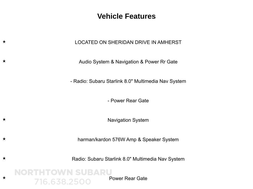 - Radio: Subaru Starlink 8.0" Multimedia Nav System